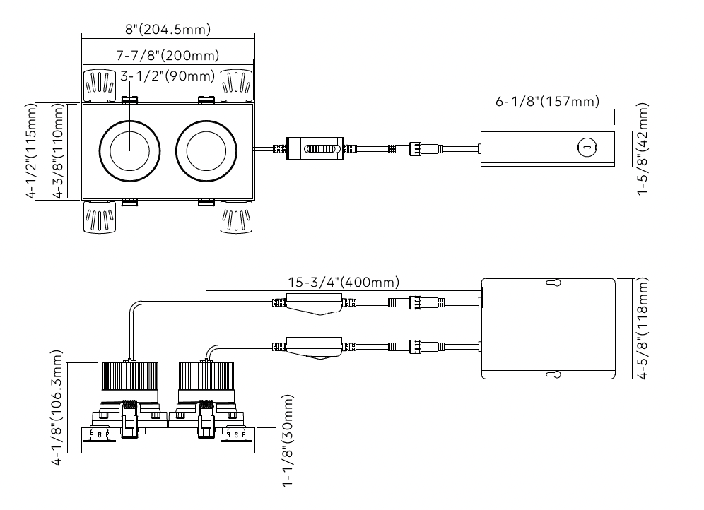 Each adjustable LED gimbal head delivers 12W of performance with 5CCT selectable color temperatures, allowing precise customization for any environment. The dual-head system provides independent aiming, featuring 15° tilt and 360° rotation for accenting artwork, feature walls, kitchen islands, and commercial displays.